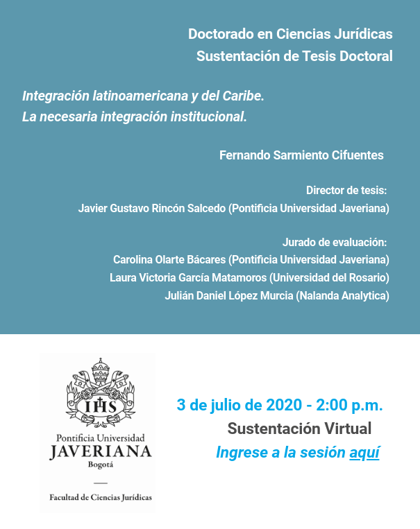 Invitado como jurado al Doctorado en Derecho de la Universidad Javeriana 27/06/2020 · by julianlopezm · Bookmark the permalink. · Share this: Share on X (Opens in new window) X Share on Facebook (Opens in new window) Facebook Related