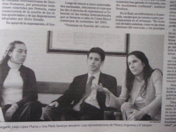Entrevista después de llegar a la final de la Competencia Eduardo Jiménez Arechaga de la Asociación Costarricense de Derecho Internacional en el 2003.