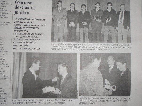 Concurso de Oratoria Jurídica organizado por LEGIS y la Universidad Javeriana en el 2002.